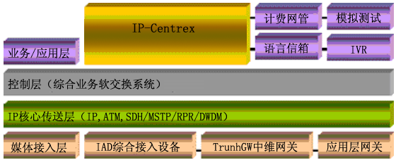 、完整的、标准化的Softswitch体系架构。INS软交换系统分为四层:媒体/接入层,IP核心传送层,