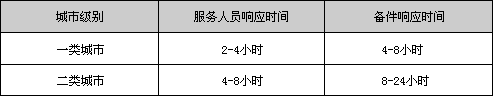 广州捷讯向我们的用户承诺: 定义及说明: 人员响应时间:由广州捷讯接到用户申报信息起计,至服务人员到达用户现场的时间。 备件响应时间:由广州捷讯接到用户申报信息起计,至备件到达用户现场的时间。 一类城市:广州、深圳、上海、北京。 二类城市:除一类城市之外的国内其它所有城市。